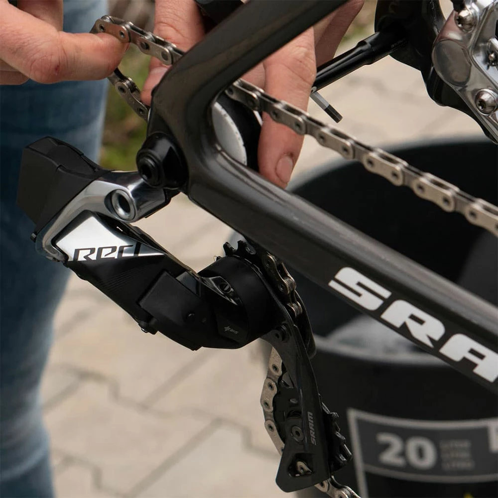 Avec le Pocket Sprocket de Dynamic Bike Care, le nettoyage de ta chaîne de transmission devient un jeu d’enfant. Introduis simplement ton axe de 12 mm et place la chaîne dans le guide prévu à cet effet