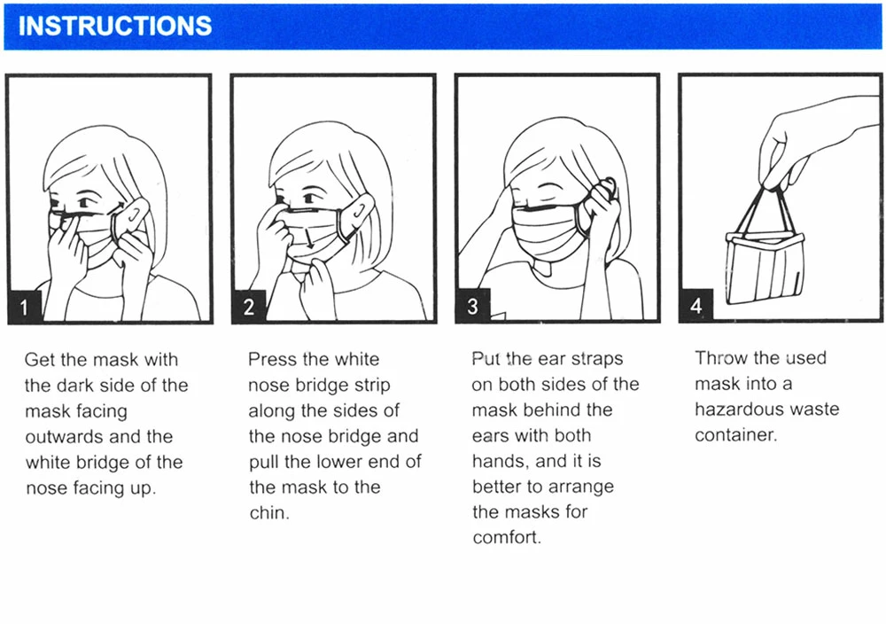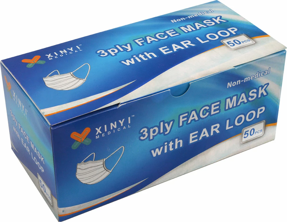 The 3-ply, non-medical face mask certified to GB/T 32610-2016 standard is intended for single use and has a bacterial filtration efficiency (BFE) of 95%. It has a flexible noseband and soft, elastic ear loops.