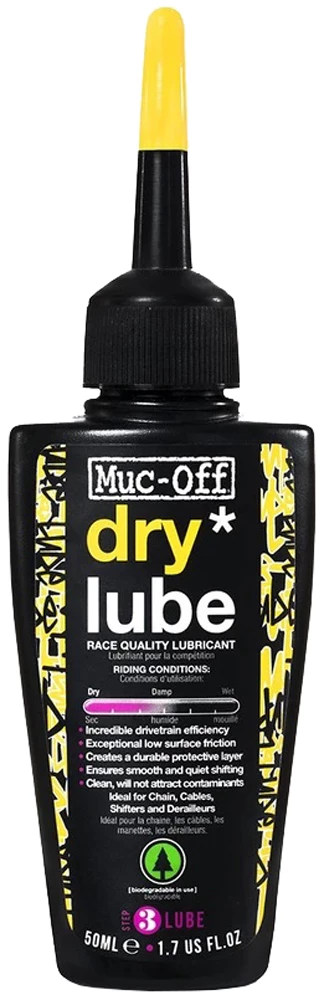Muc-Off Dry Lube est un lubrifiant pour chaîne durable et pénétrant en profondeur, conçu pour résister à des conditions extrêmes où d’autres lubrifiants échouent. Un lubrifiant pour chaînes P.T.F.E. à pénétration profonde et à action prolongée pour les conditions sèches.