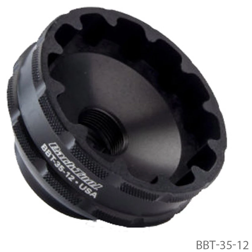 Le BBT-35 de Park Tool est un outil de précision en aluminium fraisé CNC pour le montage et le démontage des boîtes de pédalier filetées à 12 ou 36 encoches.