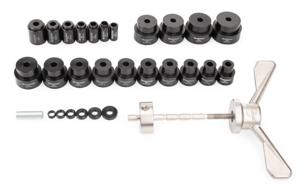 Le Park Tool SBK-1 est un kit professionnel pour l’installation et le retrait des roulements à cartouche dans les suspensions de vélo. Un kit complet comprenant 27 guides usinés avec précision et anodisés dur assure la compatibilité avec une large gamme de diamètres de roulements.