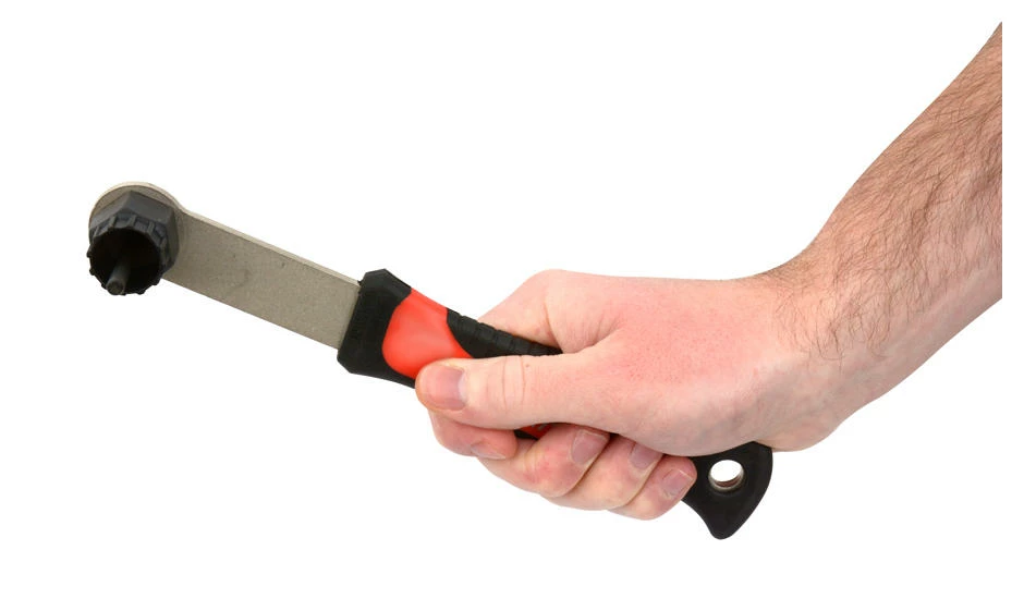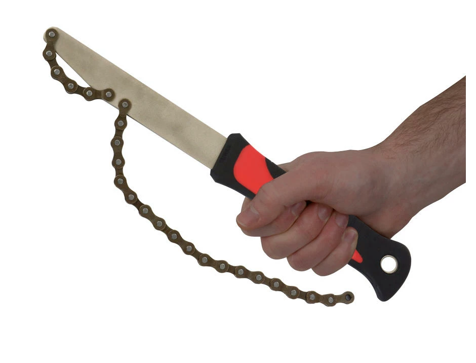 Le fouet à chaîne est un outil important pour le démontage de la cassette de la roue libre. Le fouet à chaîne permet d’appliquer un contrepoids afin de pouvoir desserrer le vissage de la cassette. Le fouet à chaîne maintient quasiment la roue libre par l’intermédiaire de la cassette, qui sert de contrepartie à la bague de fermeture et possède un filetage correspondant. C’est pourquoi un fouet à chaîne est toujours utilisé en combinaison avec un outil pour la bague de fermeture (extracteur de couronne) afin de retirer la cassette.