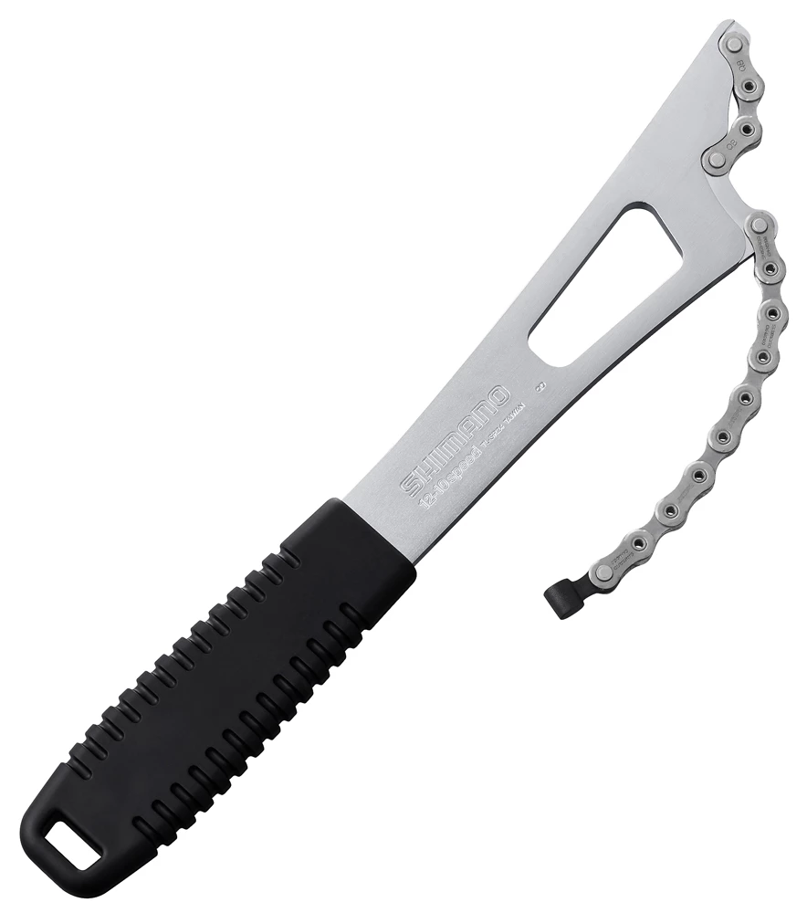 Le contre-pignon Shimano TL-SR24 (fouet de chaîne) maintient les cassettes 10 à 12 vitesses pour libérer l’anneau de fermeture.